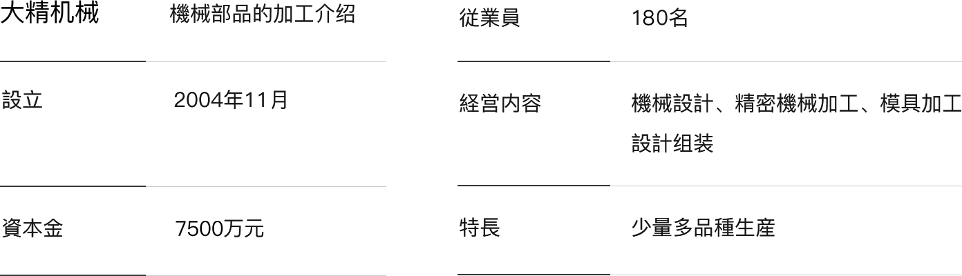 杭州大精機械制造有限公司創立于2004年,現有注冊資本2500萬元,總投資7500萬元,現有180名技術員工,擁有進口五軸加工中心、龍門加工中心、數控車床、臥式加工中心、磨床等60多臺生產設備。主要從事從精密機械零部件的加工到按客戶需求進行裝配服務方式的高新技術企業。產品主要分布藥品、食品包裝設備的核心零部件,半導體芯片檢測的設備精密部件以及液晶生產線搬運機器人的精密部件以及真空設備上的精密部件。